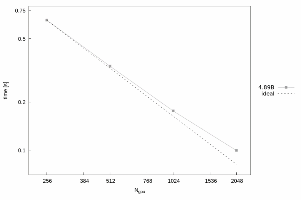 Furthermore, a key breakthrough was leveraging NVIDIA’s HPC compilers, allowing seamless GPU acceleration of computationally intensive routines. This resulted in a substantial speedup of flow simulations while maintaining numerical stability and accuracy. Additionally, efficient domain decomposition techniques were employed to distribute the workload across up to 2048 GPUs, enabling near-linear scaling for large-scale aircraft simulation as seen in Figure 1.